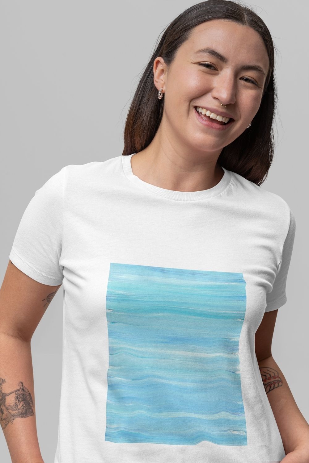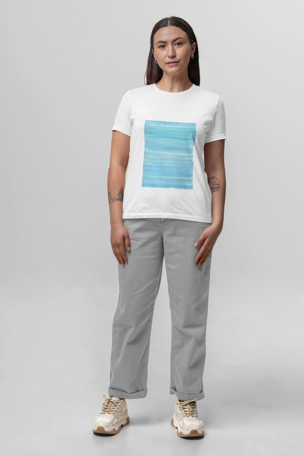 With shades of blue and turquoise, this white tee mirrors the ocean depths of Cancer’s emotions and wisdom. Soft and soothing, it feels as comfortable as your favorite pajamas—yet effortlessly polished enough to step out into the world. Like a second skin, it wraps you in a sense of home, security, and connection to the cosmic tides that move you.