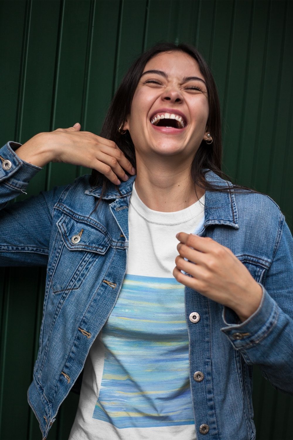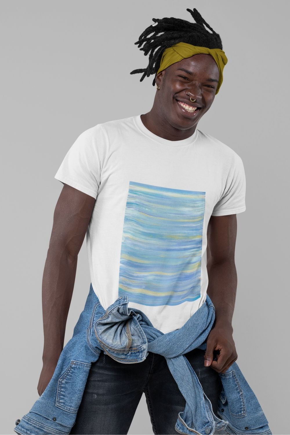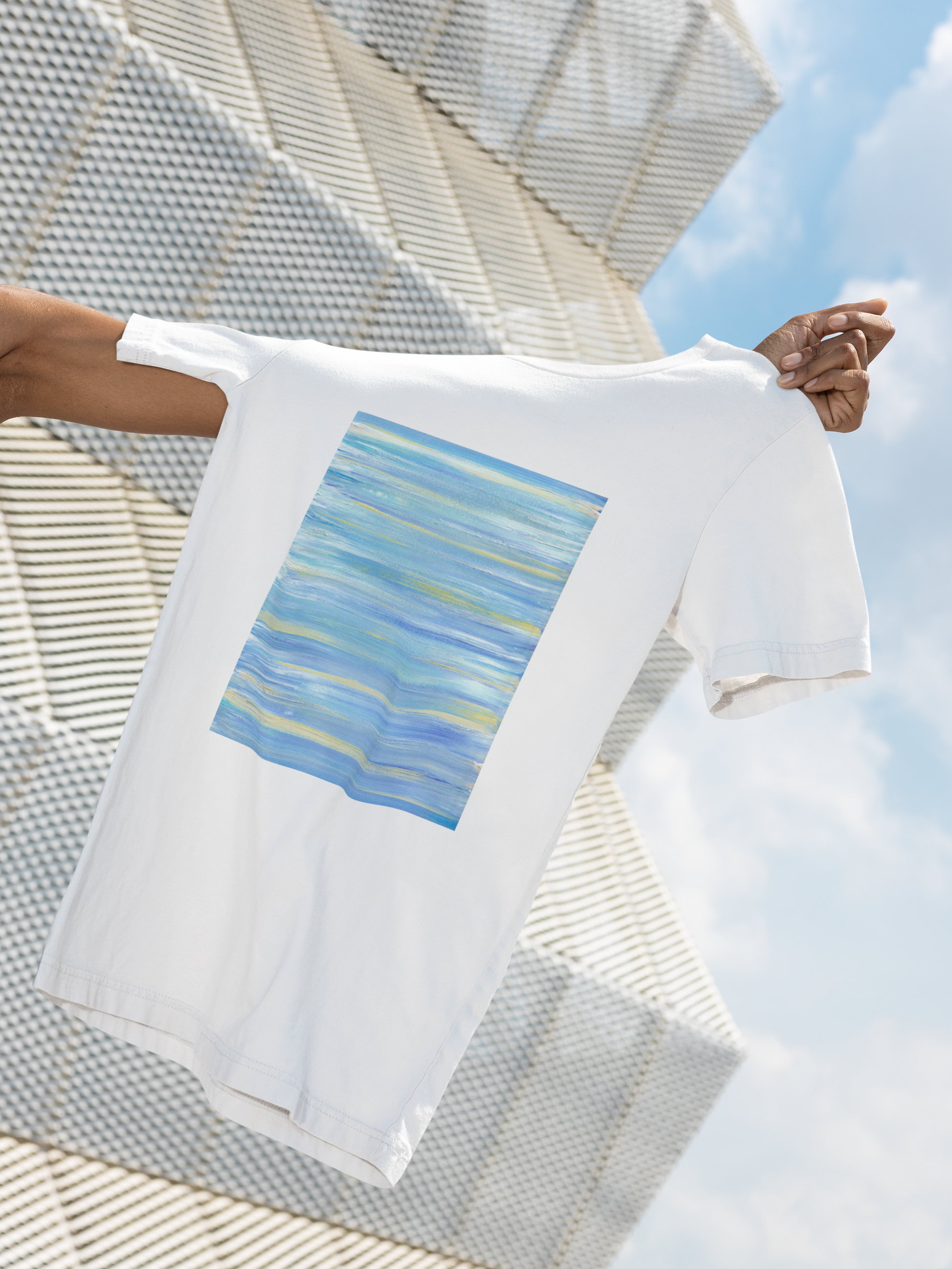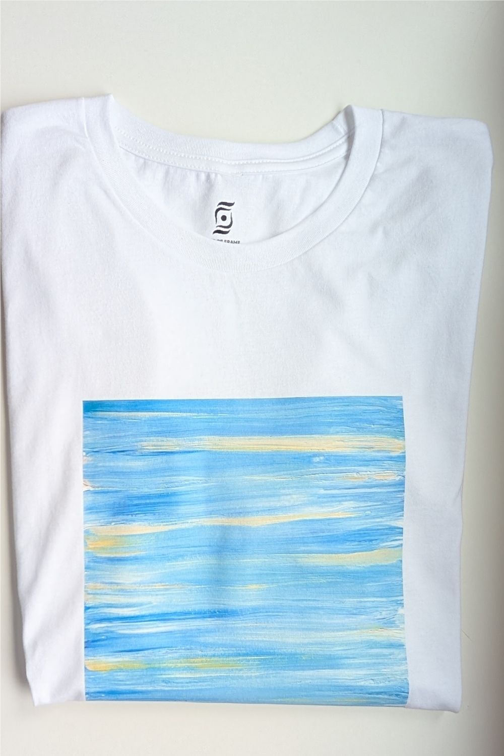 This white tee bursts with shades of  sky blue, white, and soft yellow—capturing Gemini’s ever-curious mind and boundless energy. Light and airy, just like their spirit, the design reflects their quick wit, adaptability, and endless thirst for knowledge. A true social butterfly, Gemini thrives on conversation, connection, and the thrill of new experiences. Always on the go, they move effortlessly between ideas, and adventures, never staying in one place for too long.